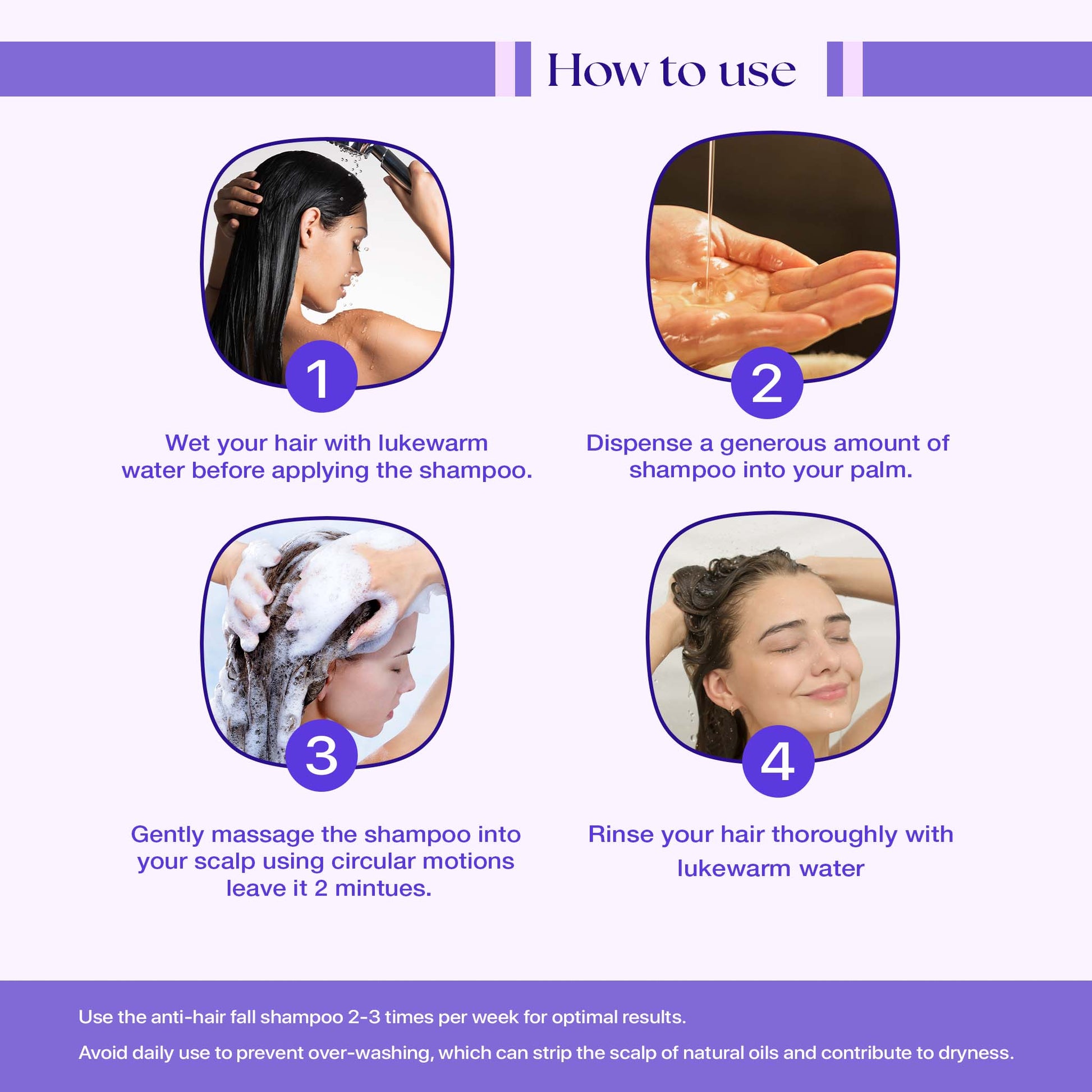 Combat hair fall and restore your confidence with our Anti-Hairfall Shampoo, a potent solution for stronger, healthier hair. Enriched with nourishing ingredients like Redensyl and keratin, our shampoo targets the root cause of hair fall while promoting thicker, fuller strands. Specially crafted to reduce breakage and improve overall hair quality, it gently cleanses the scalp, removing impurities without stripping away essential moisture.